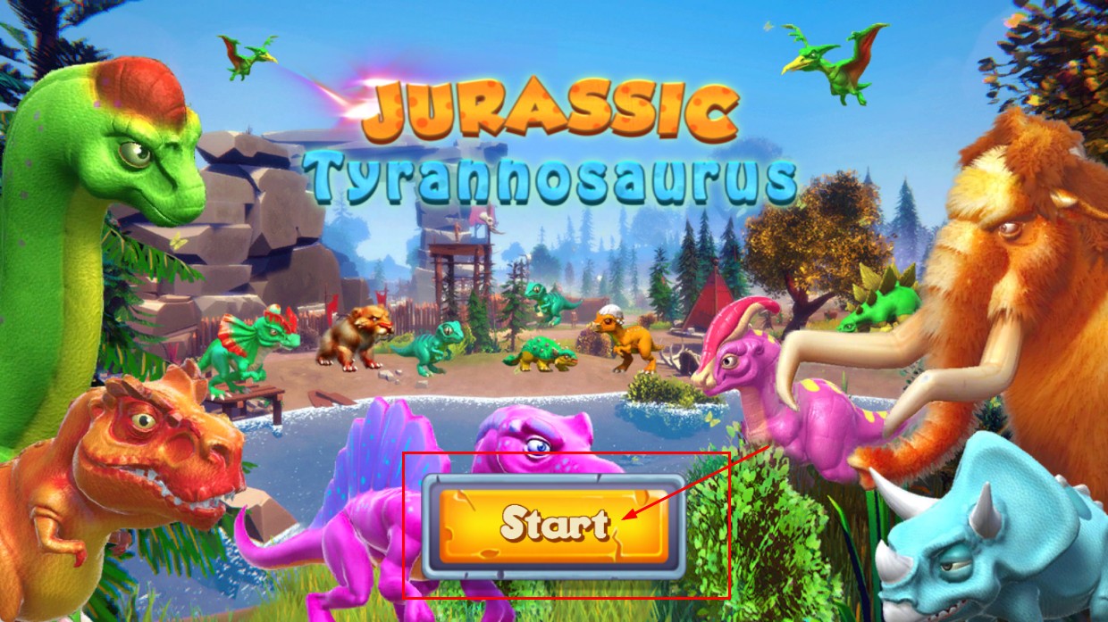 1、點擊【Start】按鈕,進入侏羅紀霸王龍游戲,開啟恐龍時代的生存冒險之旅。