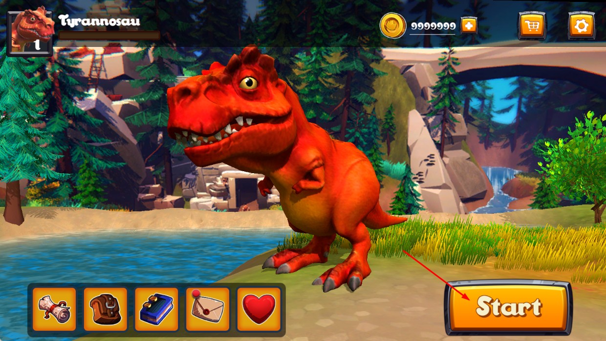2、點擊【Start】按鈕,進入游戲場景,開始操控霸王龍覓食、戰(zhàn)斗以提升等級技能。