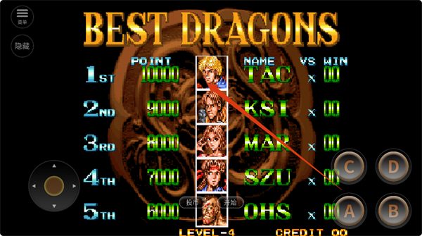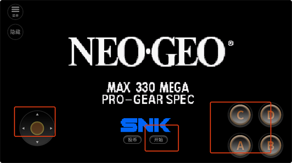 1、進(jìn)入游戲先熟悉界面,了解左側(cè)搖桿、中間【開(kāi)始】鍵和右側(cè)【A】【B】【C】【D】鍵的功能,為游戲操作做好準(zhǔn)備。