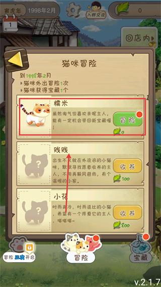 3、參與【貓咪冒險】,派遣貓咪糯米外出冒險,有機會帶回新寶藏,豐富游戲資源和內(nèi)容。